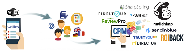 La integración de WiFi.PRO con soluciones CRM, permite que los datos de los usuarios que conectaron al WiFi se exporten de manera automática e inmediata hacia estas, enriqueciendo sus listados de contactos.